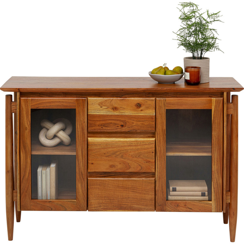 | Materiais : | Corpo e frentes: Madeira maciça de acácia tingida e lacada, Painel traseiro: Painel de fibras de média densidade (MDF) lacado, |