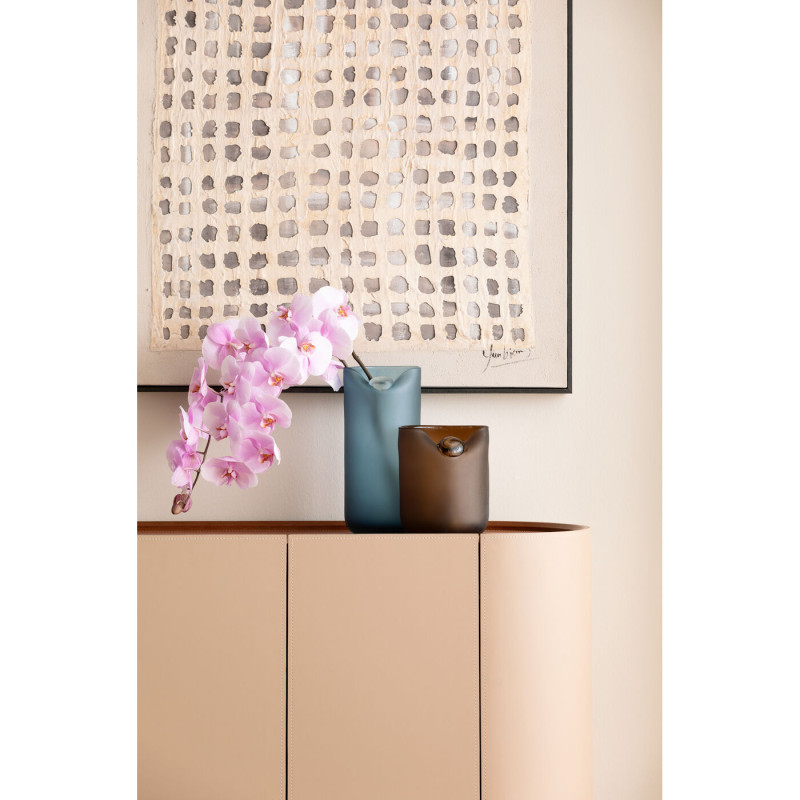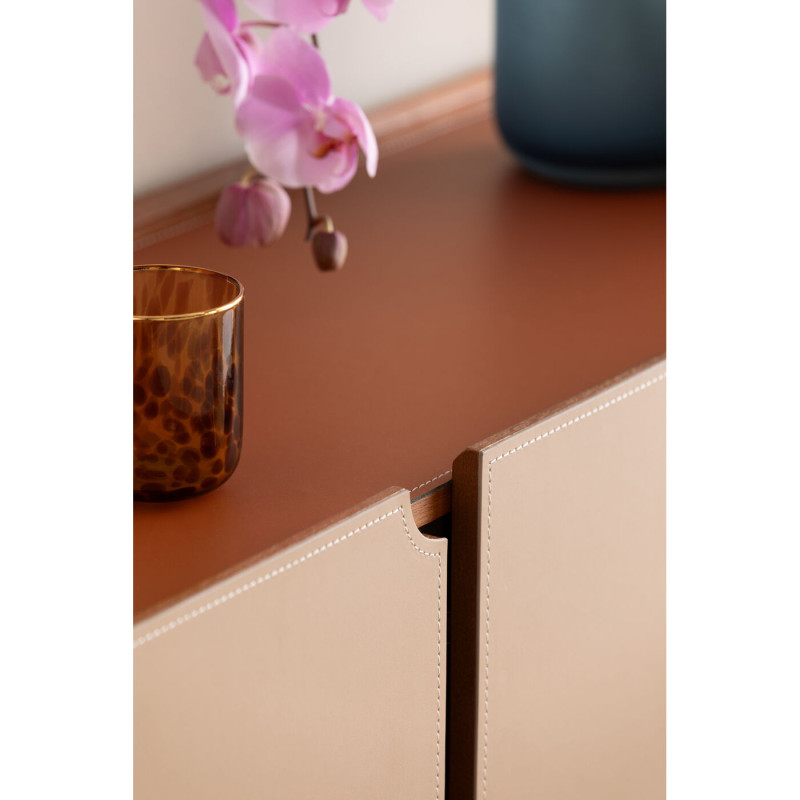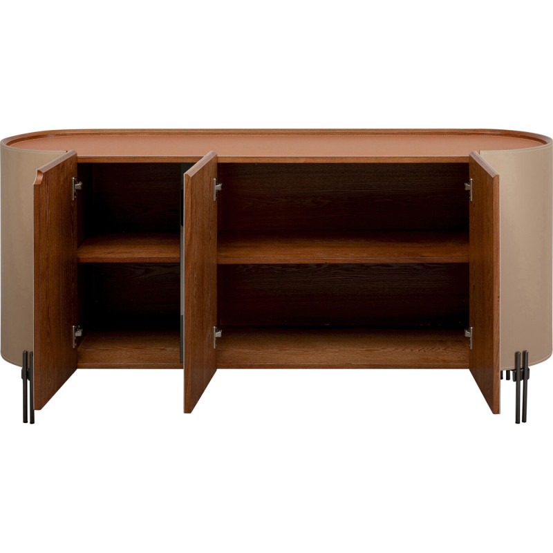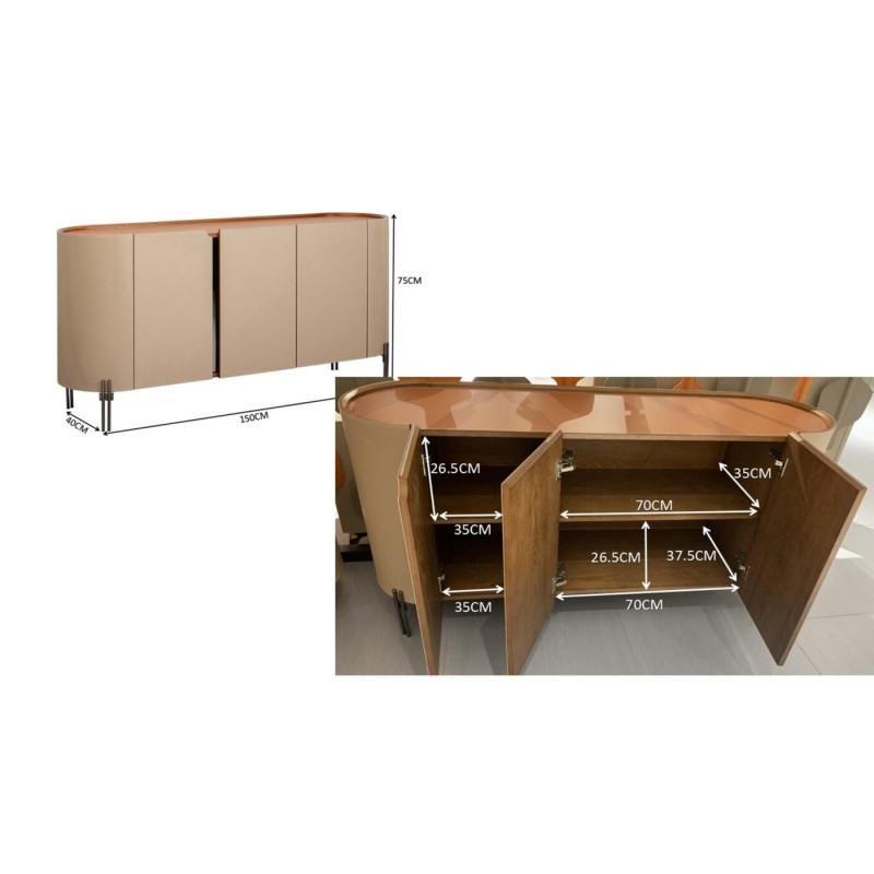 | Materiais : | Corpo: Painel de fibras de média densidade (MDF) lacado, Frente: Revestimento em poliuretano têxtil, Pé/Base: Aço inoxidável la |