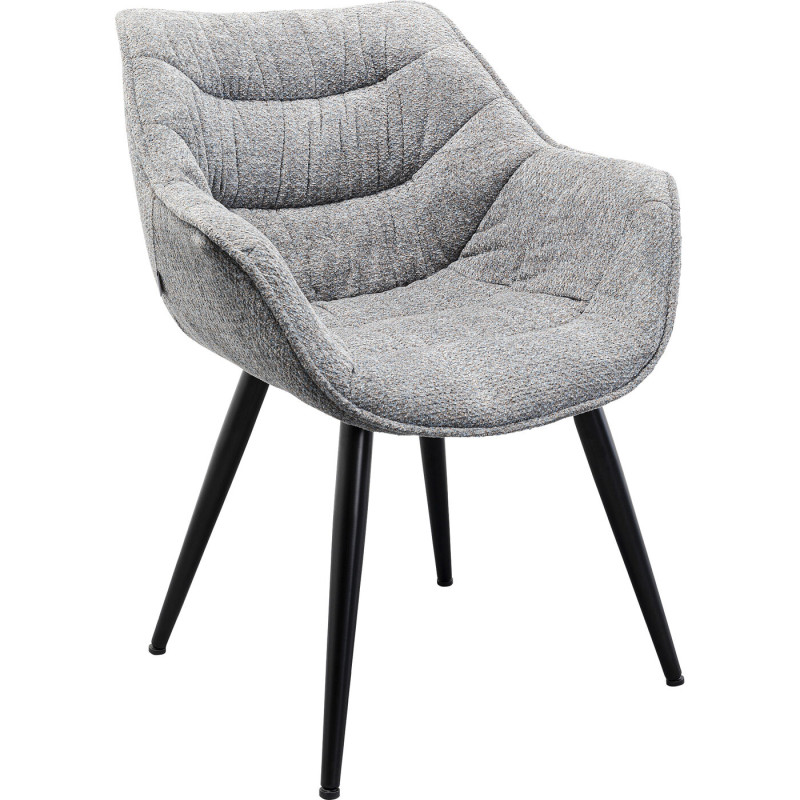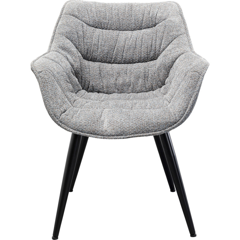 | Materiais : | Revestimento: 100% poliéster, Estofo: Poliuretano 30 kg/m³, Assento: Contraplacado natural/sem tratamento, Pé/Base: Aço com pin |