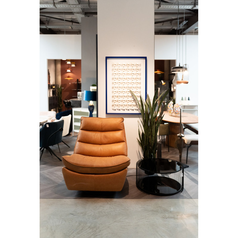 | Materiais : | Estrutura: Contraplacado lacado, Revestimento: Pele semi anilina, Estrutura: Aglomerado de eucalipto lacado, Pé/base: Aço com p |