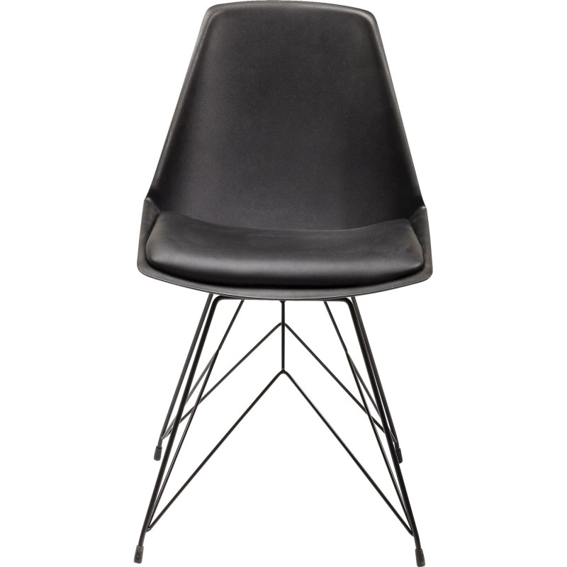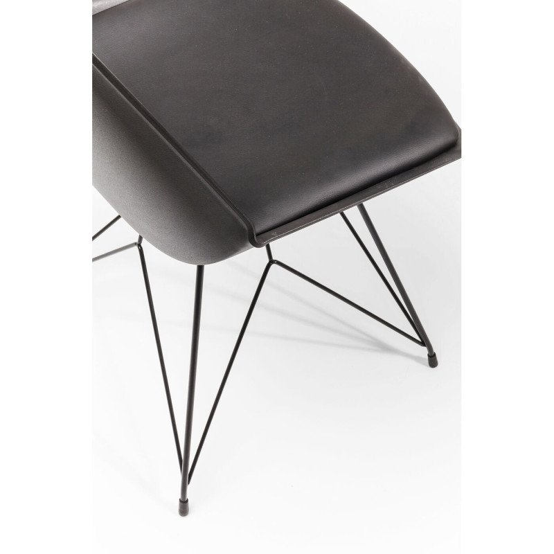 Disponível também como banco de bar. Uma cadeira moderna estofada num design reduzido com uma delicada estrutura em aço. Estofos leves. Perfeitamente adequada ao mobiliário moderno.