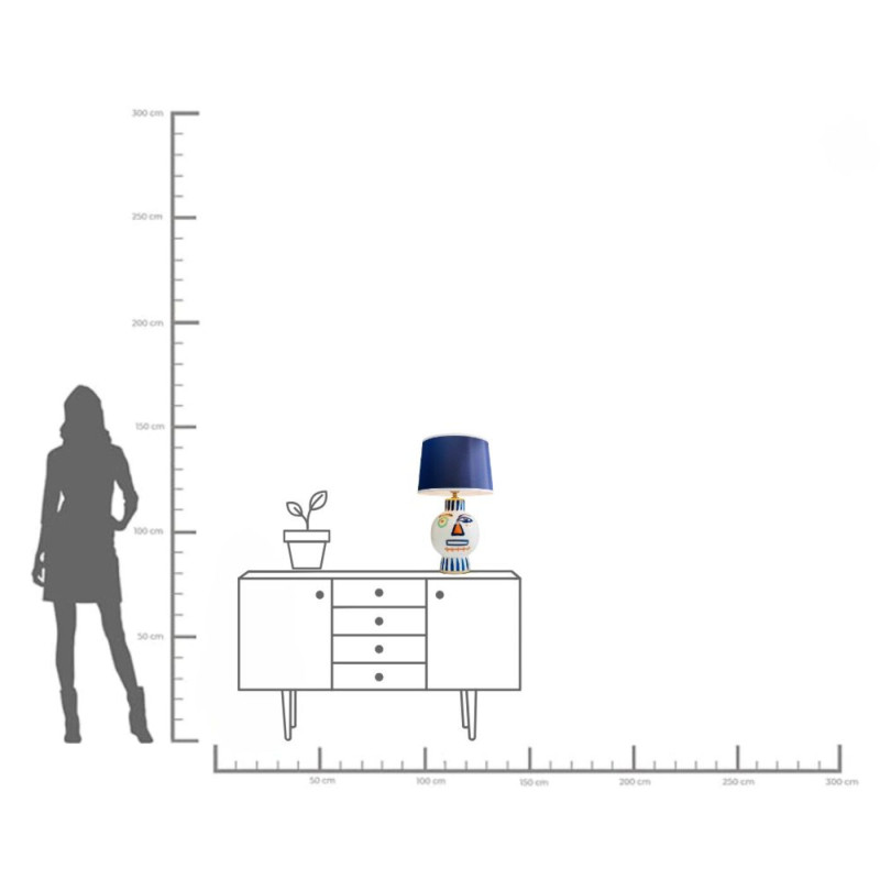 | Materiais : | 100% poliéster, esmaltado em porcelana, comprimento do cabo de 200 cm, Abat-jour Ø 38 cm altura de 26 cm, interruptor em linha, |