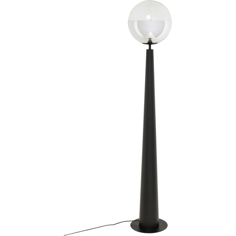 Candeeiro de pé invulgar em preto e prateado, 163 x 30 x 30 centímetros (A/L/P)# abat-jour redondo em vidro, com a sua superfíc