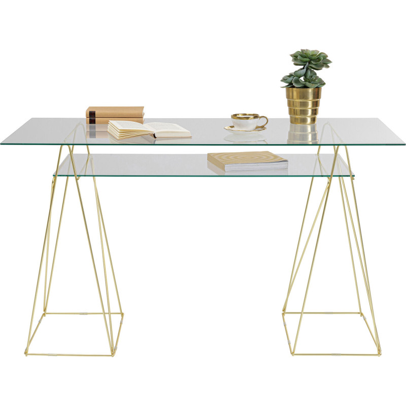 Conjunto de dois cavaletes de filigrana feitos de aço e revestidos a bronze#Os dois cavaletes constituem a base para uma mesa i