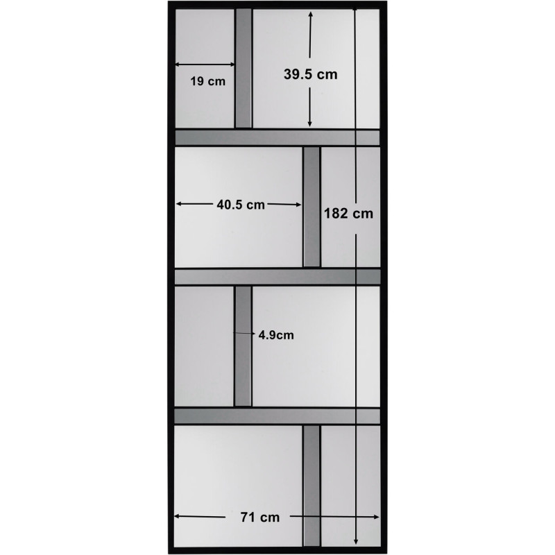 | Materiais : | Vidro: Vidro espelhado, Estrutura: Aço lacado, Painel traseiro: Painel de fibra de média densidade (MDF) lacado, Para fixação à |