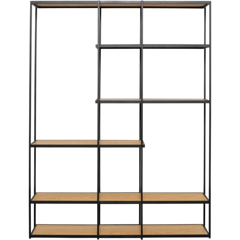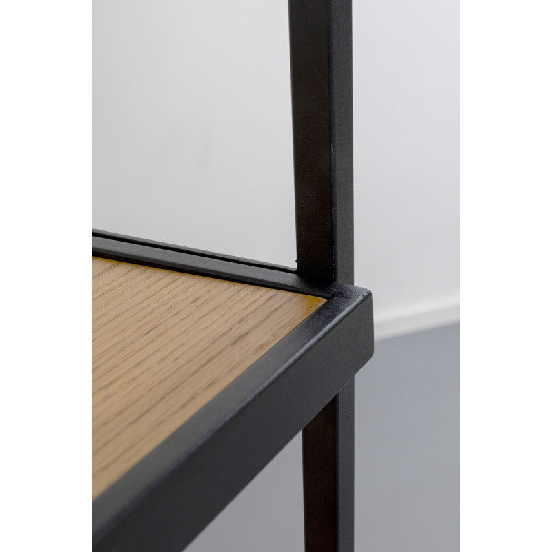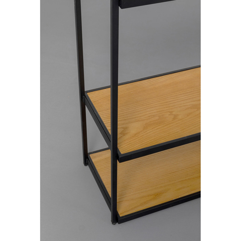 Esta prateleira dará um toque contemporâneo ao seu interior. Possui grandes prateleiras completas na parte inferior, perfeitas para uma arrumação espaçosa e versátil. Em cima, as meias prateleiras de cada lado dão um toque de originalidade e permitem-lhe expor objectos decorativos ou livros com estilo.