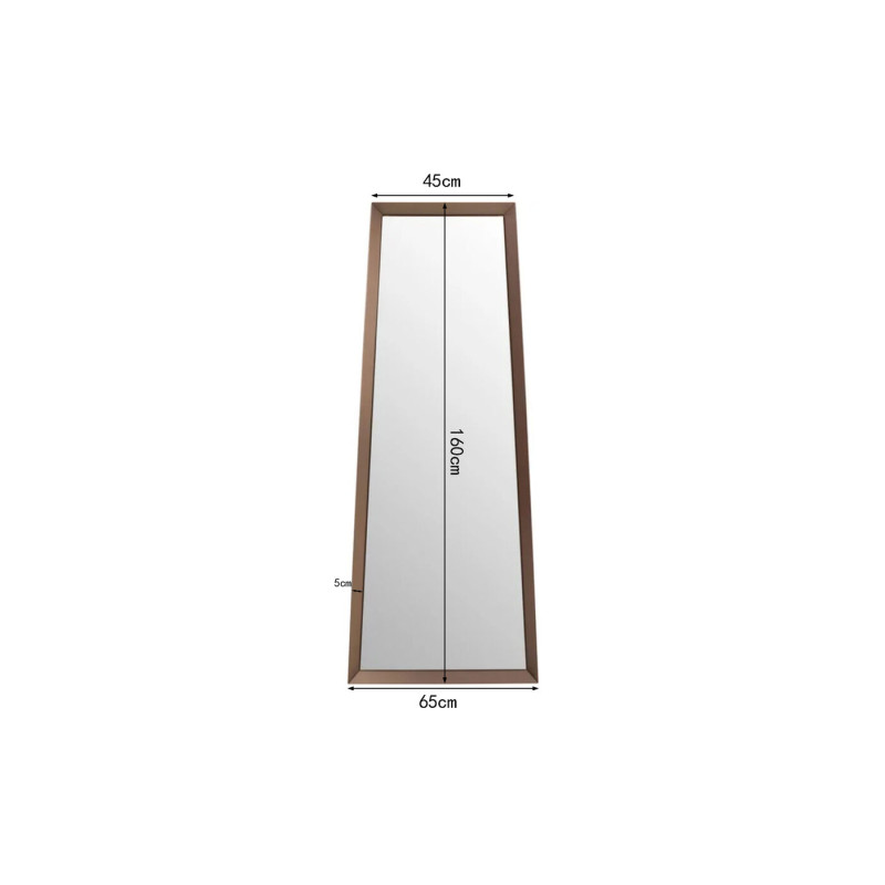 Comprimento do espelho: 45 cm em cima, 65 cm em baixo. Superfície do espelho: 153 x 58 cm. Para montagem vertical na parede.