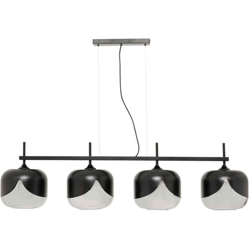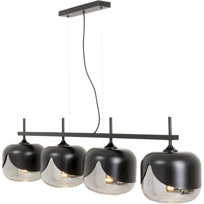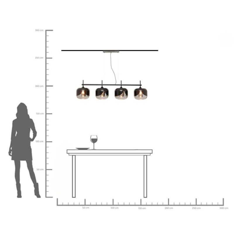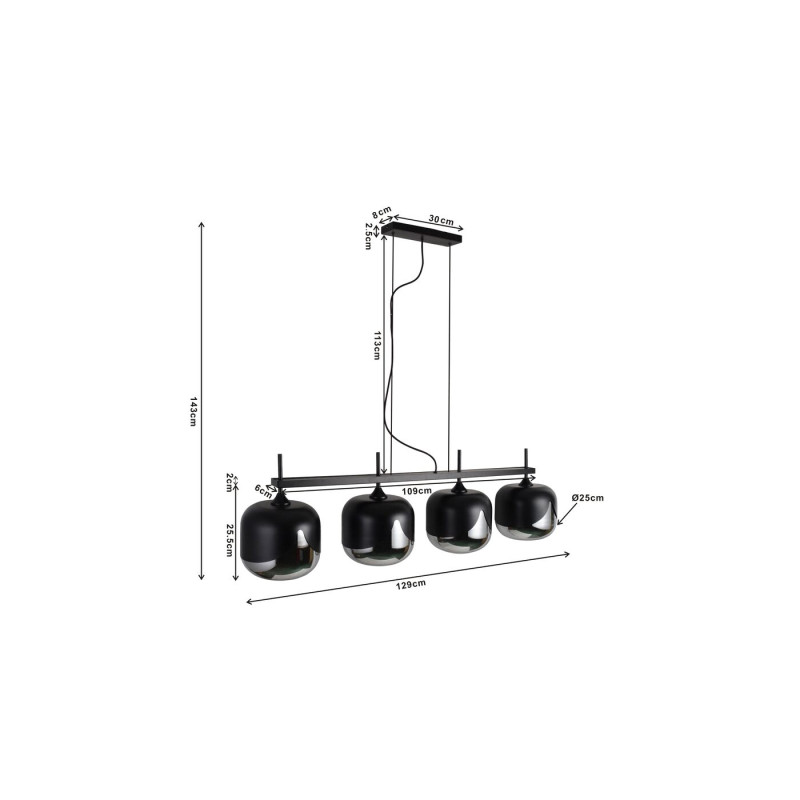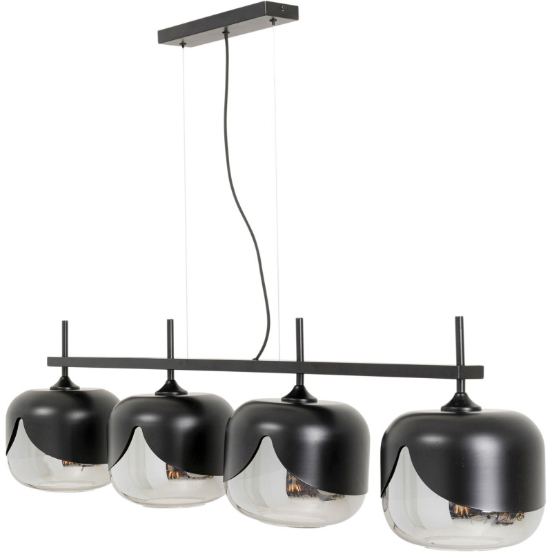 Este candeeiro de suspensão tem um estilo moderno com os seus 4 globos redondos de vidro colorido. Ficará ótimo por cima de uma mesa em qualquer sala de estar. Também disponível como candeeiro de pé, candeeiro de mesa ou versão de globo único.