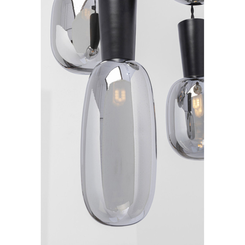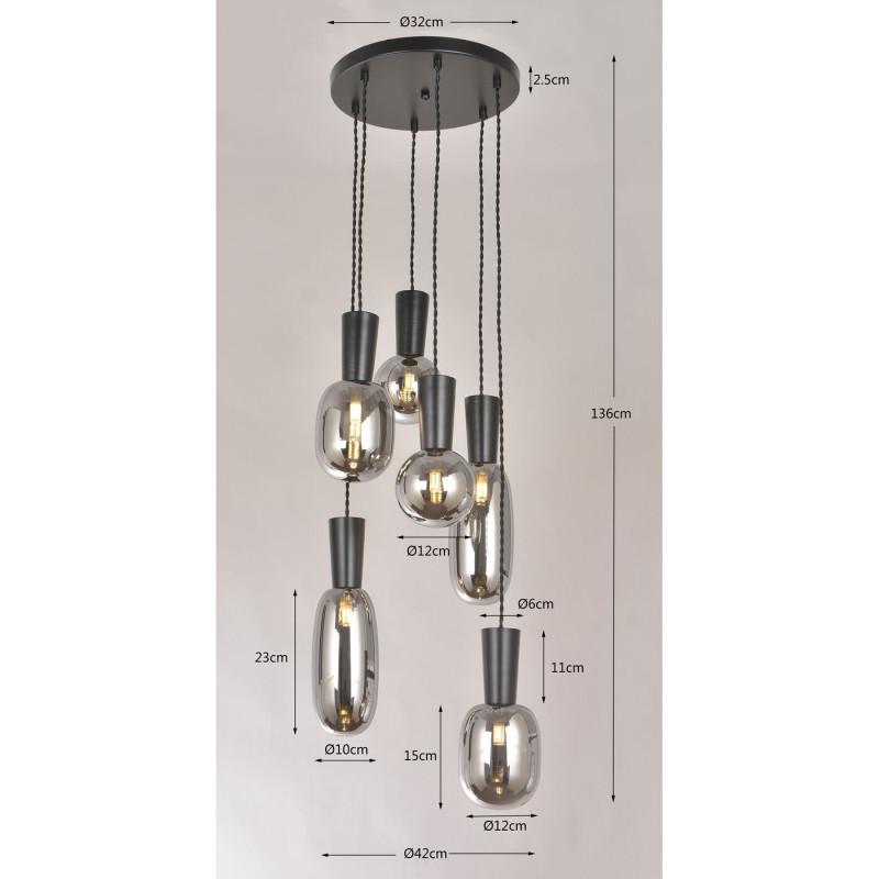 | Materiais : | Aço cromado, Vidro galvanizado, 30 - 136 cm Comprimento do cabo, 12 x 15 cm Abat-jour: 5x, 12 x 12,80 cm Abat-jour, 10 x 23 cm |