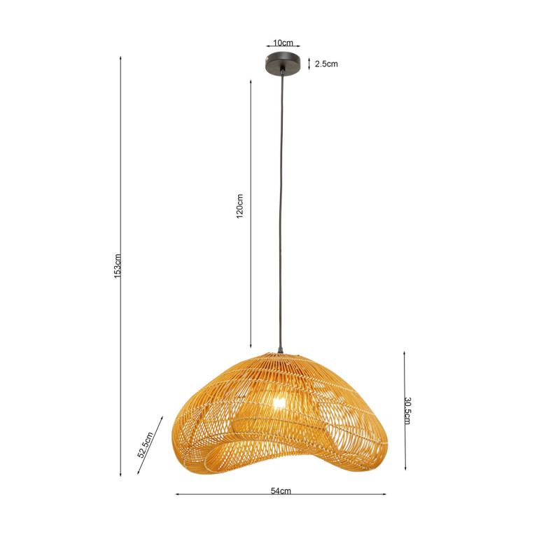 | Materiais : | Perfil: Aço lacado, Rattan, 100cm Comprimento do cabo, 54x 52,50 cm Ø Abat-jour, 10 cm perfil, Feito à mão, cabo revestido a pl |